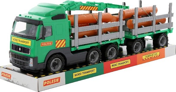 Volvo Lastbil Legetøj Med Tømmer, Kran Og Hænger