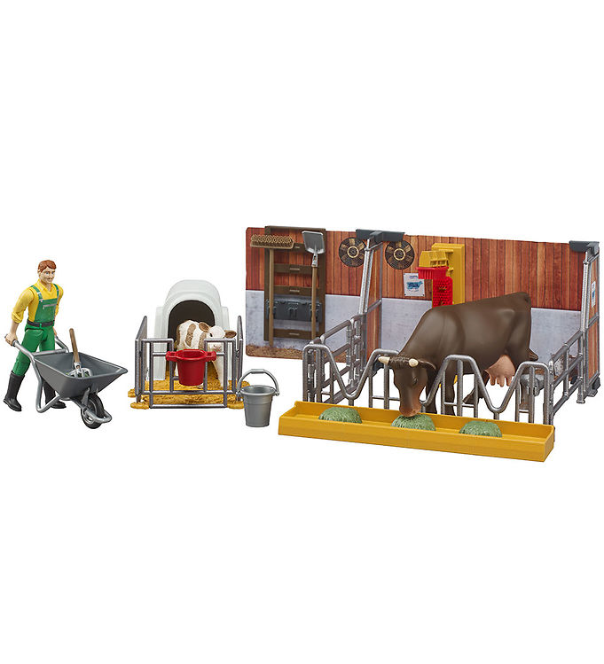 Bruder Legesæt - bworld - Stald m. Bondemand, Ko & Kalv