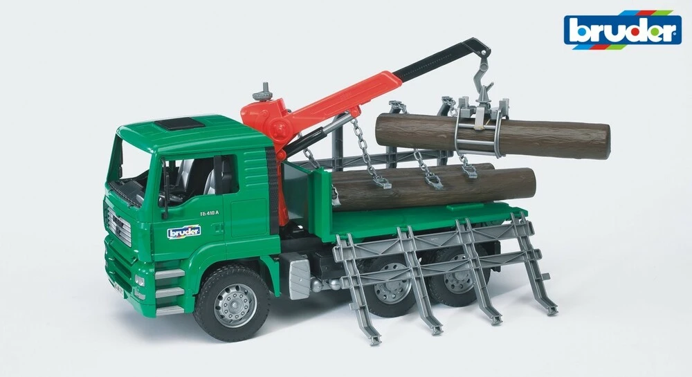 Opdag en verden af eventyr med MAN TGA Trælastbil med kran og 3 træstammer. Dette robuste legetøjssæt er designet til at vække barnets interesse for byggeri og logistik gennem leg. • Realistisk leg: Med en fungerende kran og træstammer, kan børn g