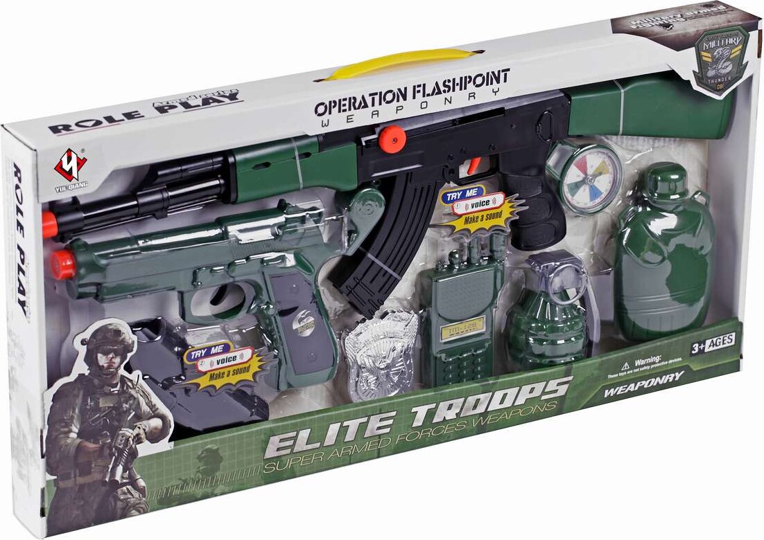 Skal du i krig samme med dine trofaste soldater og kæmpe for dit elskede fædreland? Så er det godt at have udstyret i orden. Dette militærsæt sæt indeholder både maskingevær med lyd,...