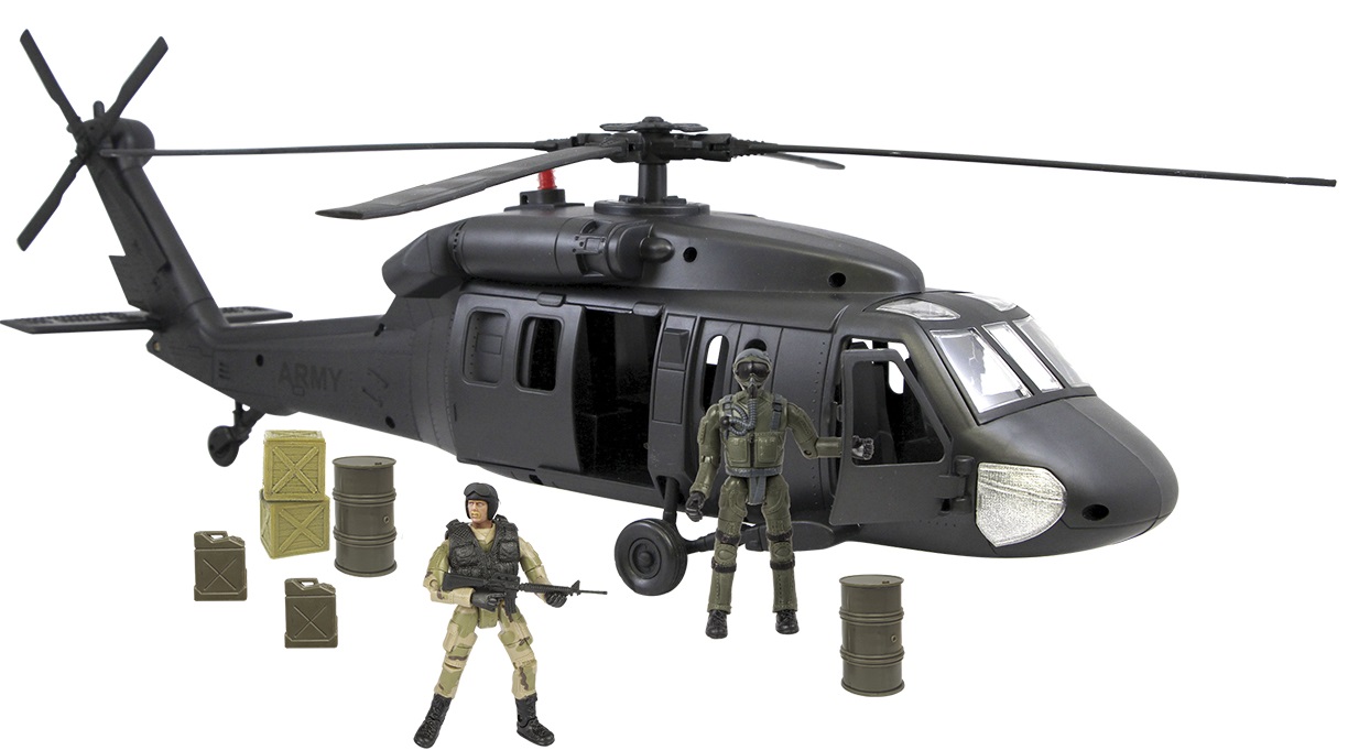 World Peacekeepers 1:18 Black Hawk Militær Helikopter m/2 actionfigurer
