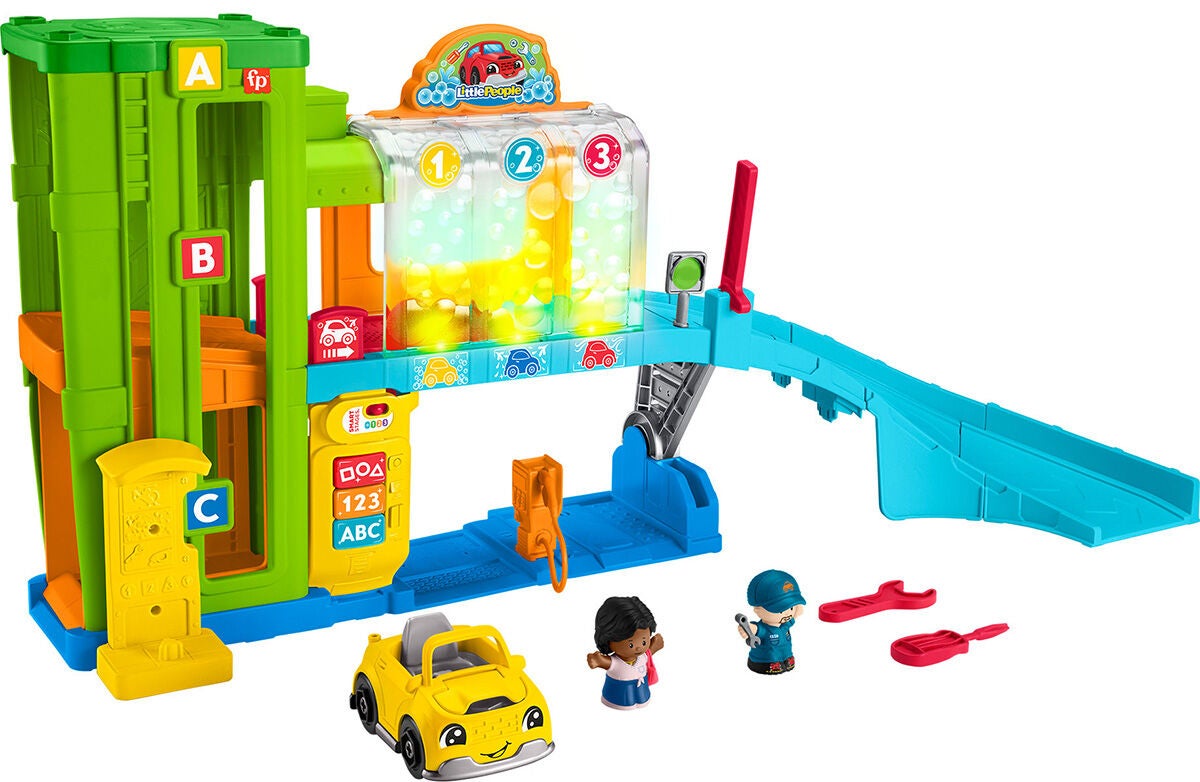 Interaktivt parkeringshus fra Fisher-Price med tre spændende indlæringstilstande. Det har to medfølgende figurer og en bil med en motorhjelm, der kan åbnes. Parkeringshuset har farverigt lys, der opmuntrer dit barn til at bruge sin fantasi. Perfekt til underholdende rollelege og pædagogiske lege! Tryk på globeknappen for at vælge sprog: dansk, svensk, finsk, norsk eller engelsk. Tre smarte indlæringsniveauer med sange, lyde og fraser, som dit barn kan gentage. CE-mærket. Anbefalet alder: Fra 3 år. Plastik. Batteri: 3 x AA (medfølger).