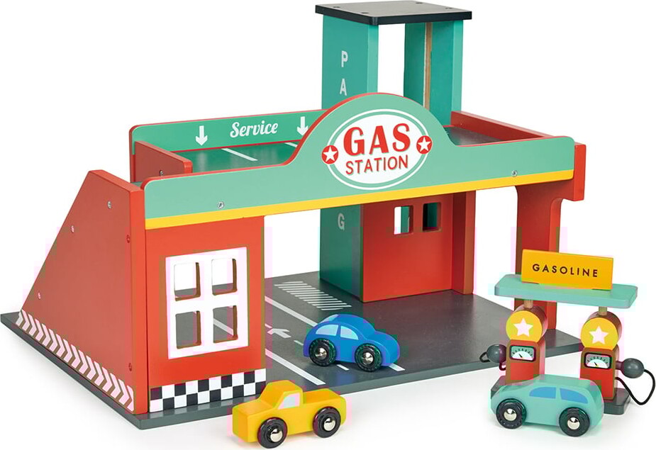 Tankstation Legetųj I Trę - Inkl. 3 Biler Og Benzinpumpe - Mentari