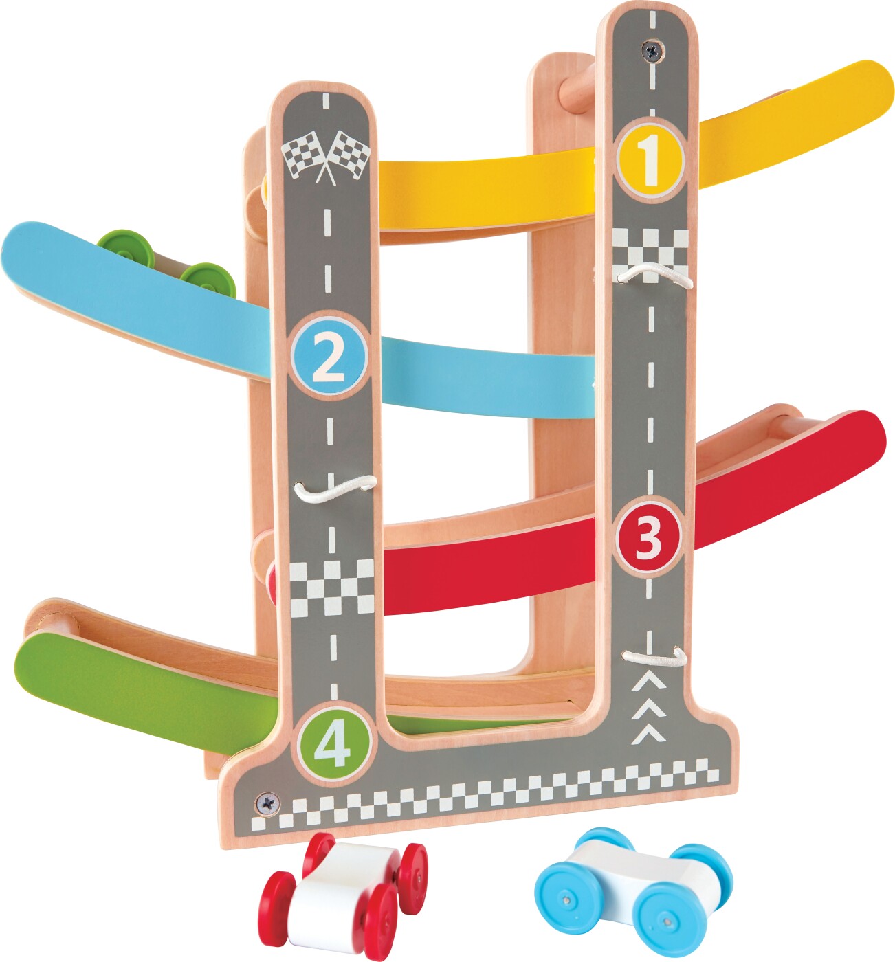 Alle kender dette klassiske legetøj: En rullebane af træ. Nogle har hypnotiserende snurretoppe, andre har bolde, men racerbilerne har altid været et hit blandt børn. Start i bane 1, 2, 3 eller 4...