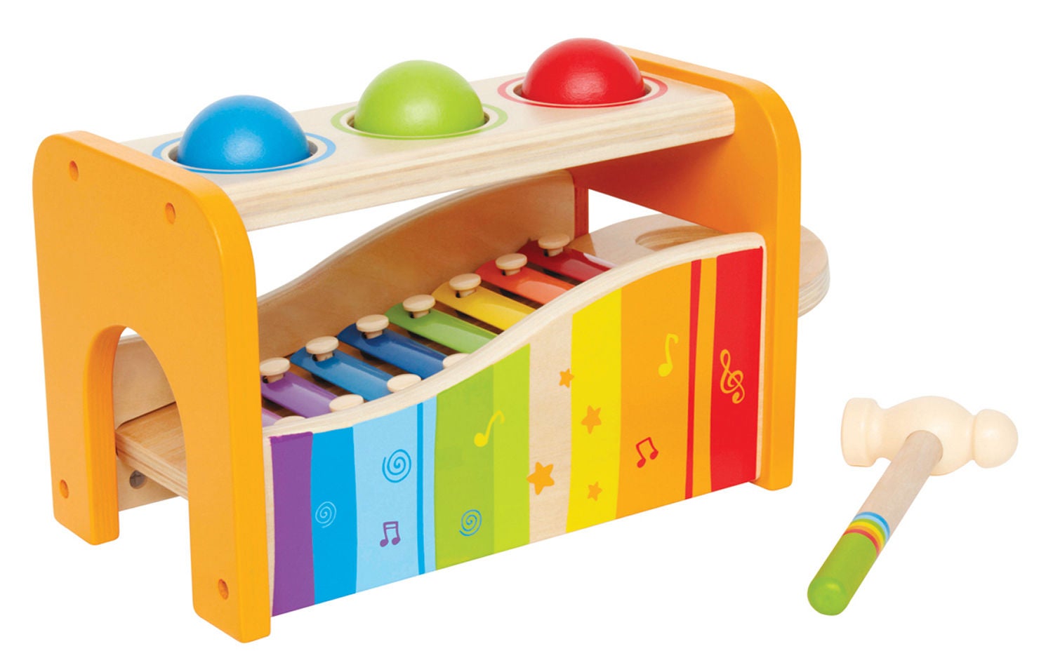 Kombinér musik og leg med en musikbænk i træ fra Hape. Slå til boldene, så de triller ned på xylofonen og skaber melodier. Perfekt første skridt ind i musikkens verden! Anbefalet alder: Fra 12 måneder.