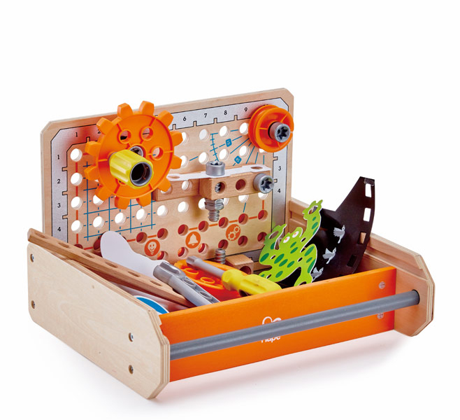 Hape - Junior Opfinder - Værktøjskasse m. eksperimenter. Er velegnet til Entreprenørskab,Finmotorik,Logisk tænkning og passer til aldersgrupperne: 4 år,5 år,6 år,7 år