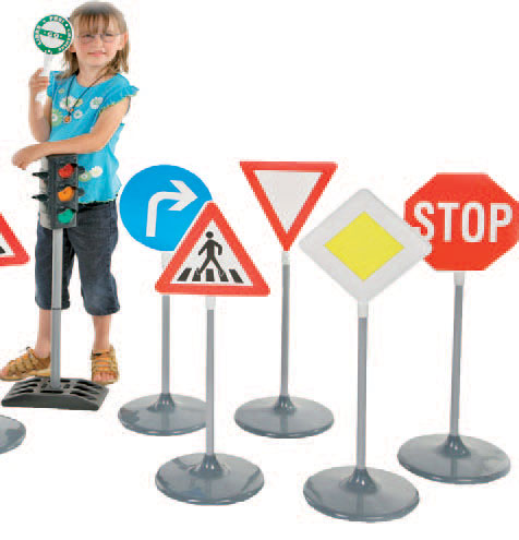 Byg en trafiktræningsbane, når dit barn skal til at færdes i trafikken.Sæt med 5 skilte. Trafiklyset kan du købe separat.