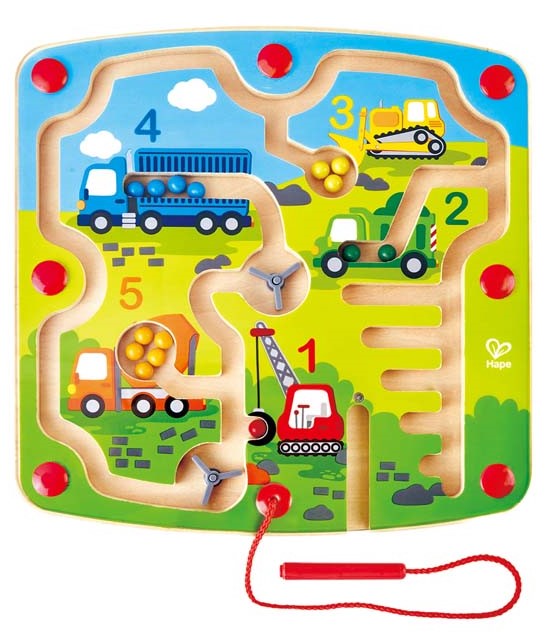 Hape - Magnetisk labyrint - Byggepladsen. Er velegnet til Finmotorik,Hånd-øje-koordination,Tal- og mængdeforståelse og passer til aldersgrupperne: 2 år,2,5 år,3 år,4 år