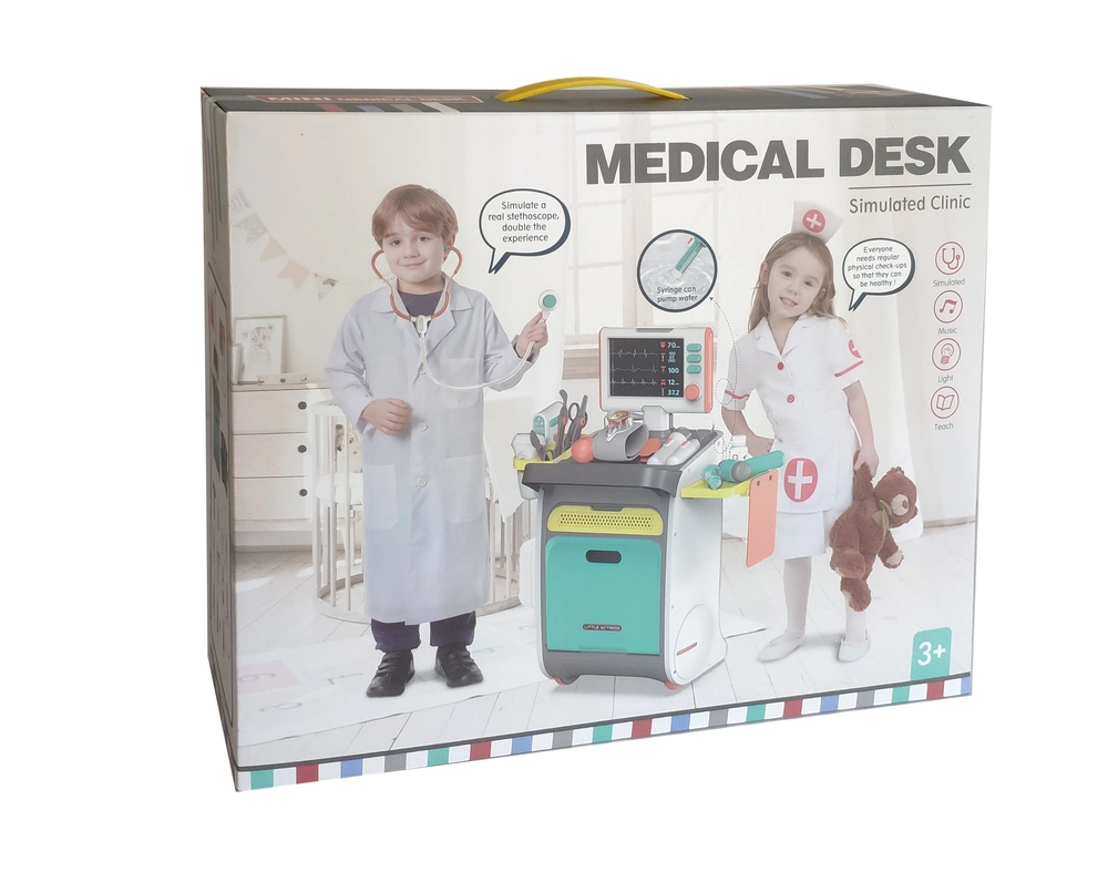 Oplev glæden ved at tage sig af andre med det detaljerige Lægekontor med tilbehør. Dette sæt er designet til at inspirere børn til at udforske sundhedspleje og lægefagets verden gennem rollespil og interaktiv leg. • Rollespils læring: Børn