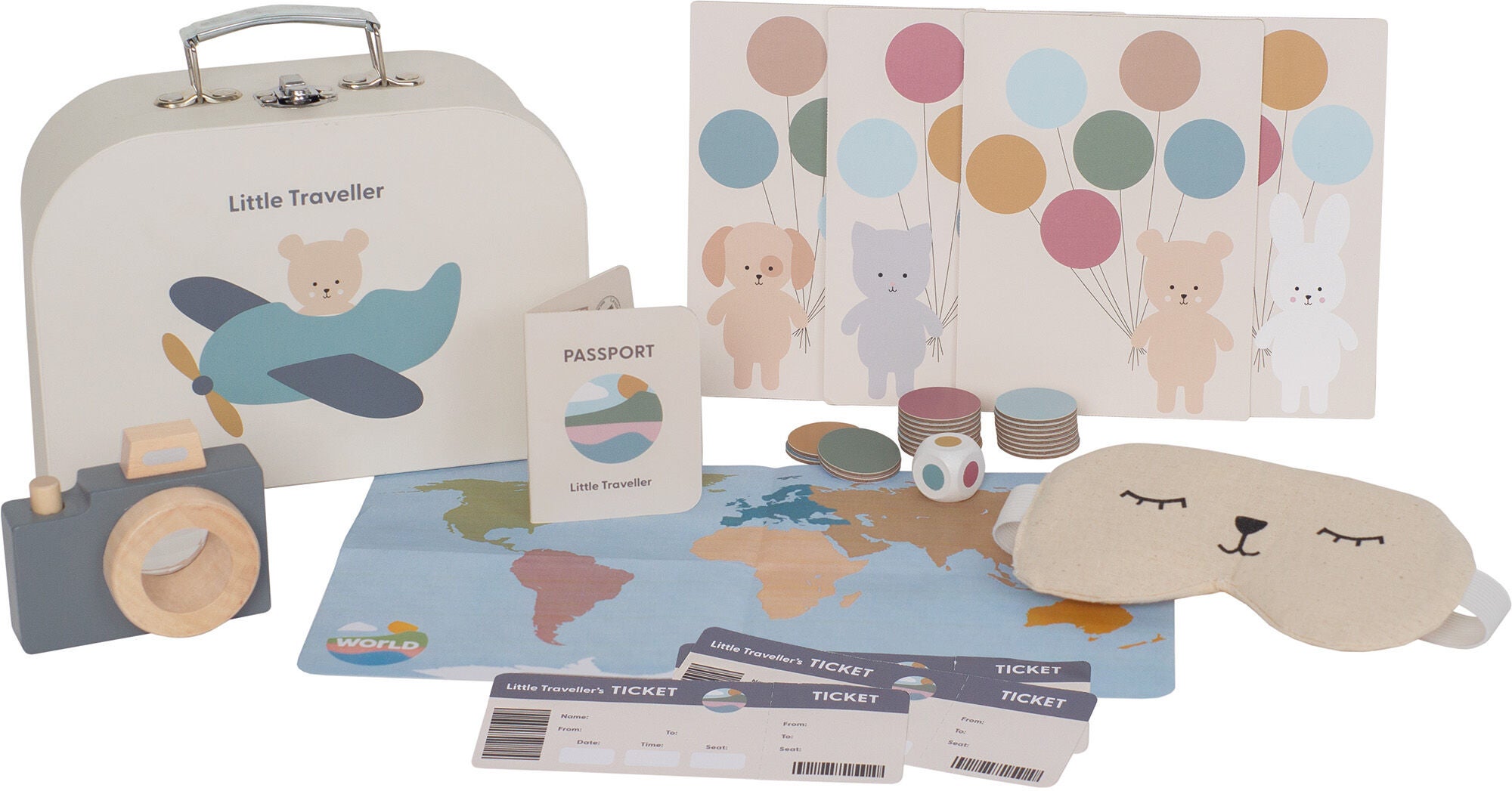 Kuffert fra JaBaDaBaDo med et underholdende rejsesæt. Den har et pas og et verdenskort. Kufferten har et kamera og et sjovt spil, som man kan spille, når man er ude at rejse. Perfekt til timevis af fantasifuld leg. CE-mærket. Indeholder: 1 kuffert, 1 pas, 3 billetter, 1 kamera med prisme, 1 sovemaske, 1 verdenskort, 4 spillebrikker, 24 farvede brikker til spillet, 1 terning. Anbefalet alder: Fra 3 år.