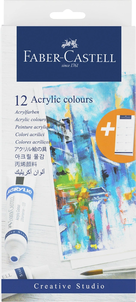 Goldfaber - Start sæt med 12 ass. Akryl farver, Ultimativt godt kompakt sæt, som er en god og billig måde at komme i gang med. Kunstnere er især inspireret af det høje indhold af pigmenter og de klare farver, som kan bruges direkte fra tuben. Den cremede
