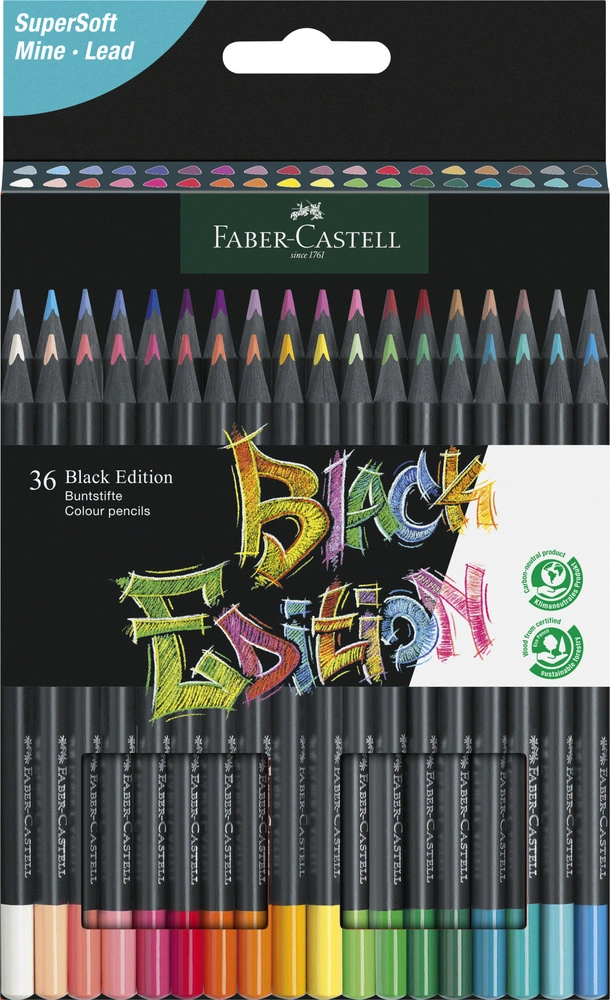 Black Edition farveblyanterne har en vidunderlig blød og levende farveudfoldelse takket være deres SuperSoft-mine. Den høje pigmentering af blyanten gør dem ideelle til maling og tegneteknikker på lyst, farvet og mørkt papir. Blyanternes ergonomiske treka