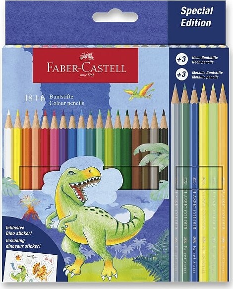 Faber-castell - Classic Farveblyanter Dinosaur, Papæske Med 24 Stk