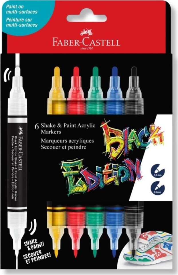 Faber-castell - Black Edition Shake & Paint Akryltuscher Sæt Med 6 (klassiske Farver)