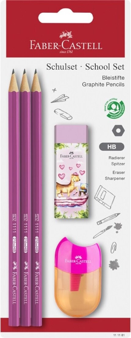Faber-castell - 3 Blyanter, Viskelęder Og Blyantspidser - Pink