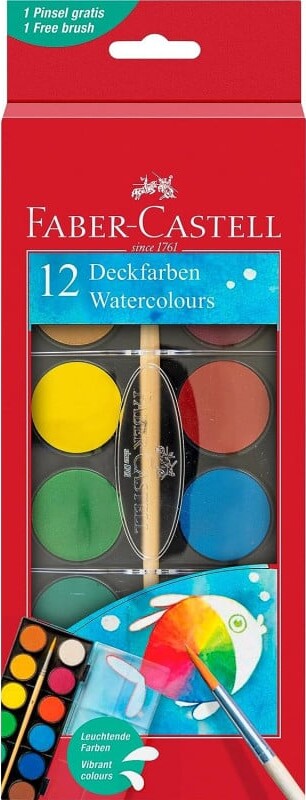 Faber-castell - Vandfarve Sæt Inkl. Pensel - 12 Store Farver