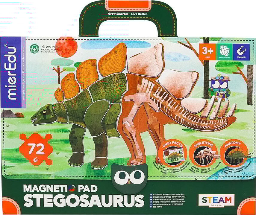 Designet til begyndere, så de kan lęre det grundlęggende om stegosaurus. Barnet kan lęre om dinosaurens krop og knogler i det magnetiske stegosaurus-puslespil og stegosaurus-anatomikort.  Den...
