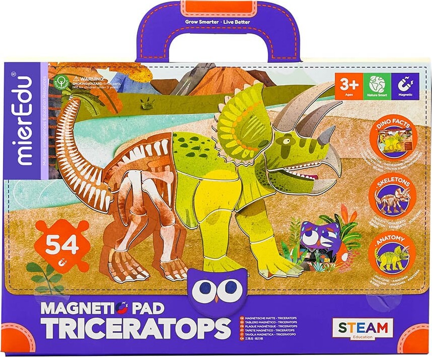 Designet til begyndere til at genkende og lęre det grundlęggende i Triceratops. Indeholder et magnetisk puslespil med kroppen og knoglerne fra Triceratops og et Triceratops profilkort. Magnetpuden...