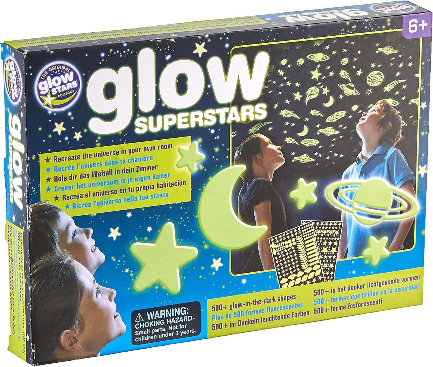 Selvlysende dekorationer fra Brainstorm. Perfekte til at gøre børneværelset endnu mere hyggeligt. - Indeholder over 500 af de mest populære skinnende plast-, papir- og glitterstjerner. - Lyser i mørket. - Skab din egen galakse. - Kan også bruges på skolebøger, tasker og møbler. - Lær mere om det ydre rum vha. den medfølgende brochure. - CE-mærket. - Anbefalet alder: Fra 3 år.