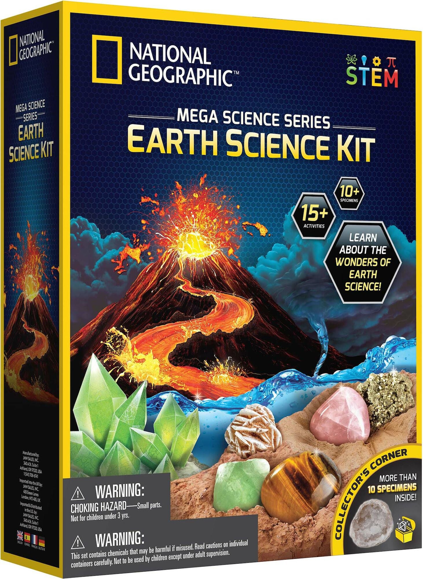 Earth Science eksperimentkasse fra National Geographic med femten aktiviteter, en krystal og en vulkan. Eksperimentkassen har plads til en fin stensamling og der medfølger en instruktionsbog. Anbefalet alder: Fra 8 år