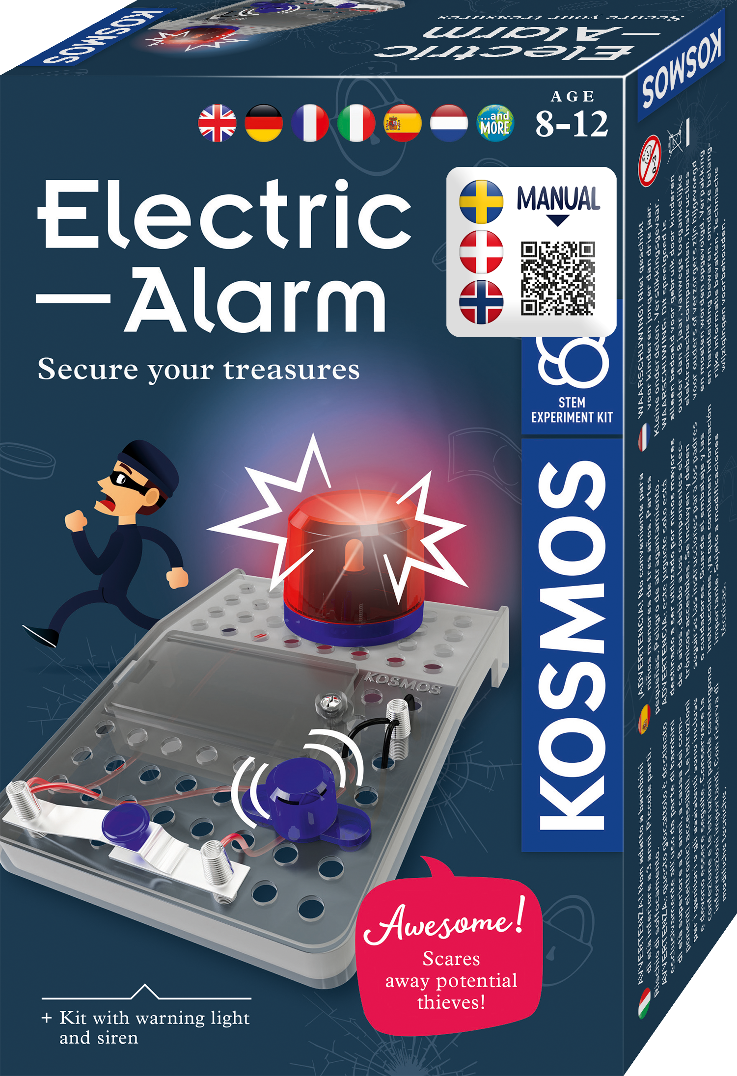 Eksperimentkasse fra Kosmos med sjove og lærerige egenskaber. Perfekt til at opmuntre børn til at opdage og lære om videnskab. - En vejledning forklarer den simple montering og fortæller ved hjælp af alarmsystemet om kredsløb, elektronik og morsekoder. - Sirene og advarselslys advarer mod tyve! - Kombinér leg og læring. - CE-mærket. - Anbefalet alder: Fra 8 år. - Batteri: (medfølger ikke).