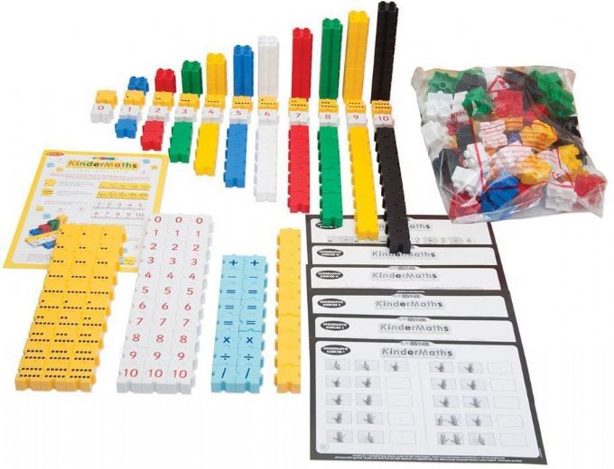 Dette matematik hjælper børn med at lære og tælle og genkende numre. Når børnene har lært at tælle antal og numre, så kan de begynde at lærer om højder,længder og simpel matematik. Produktet indeholder 350 dele.