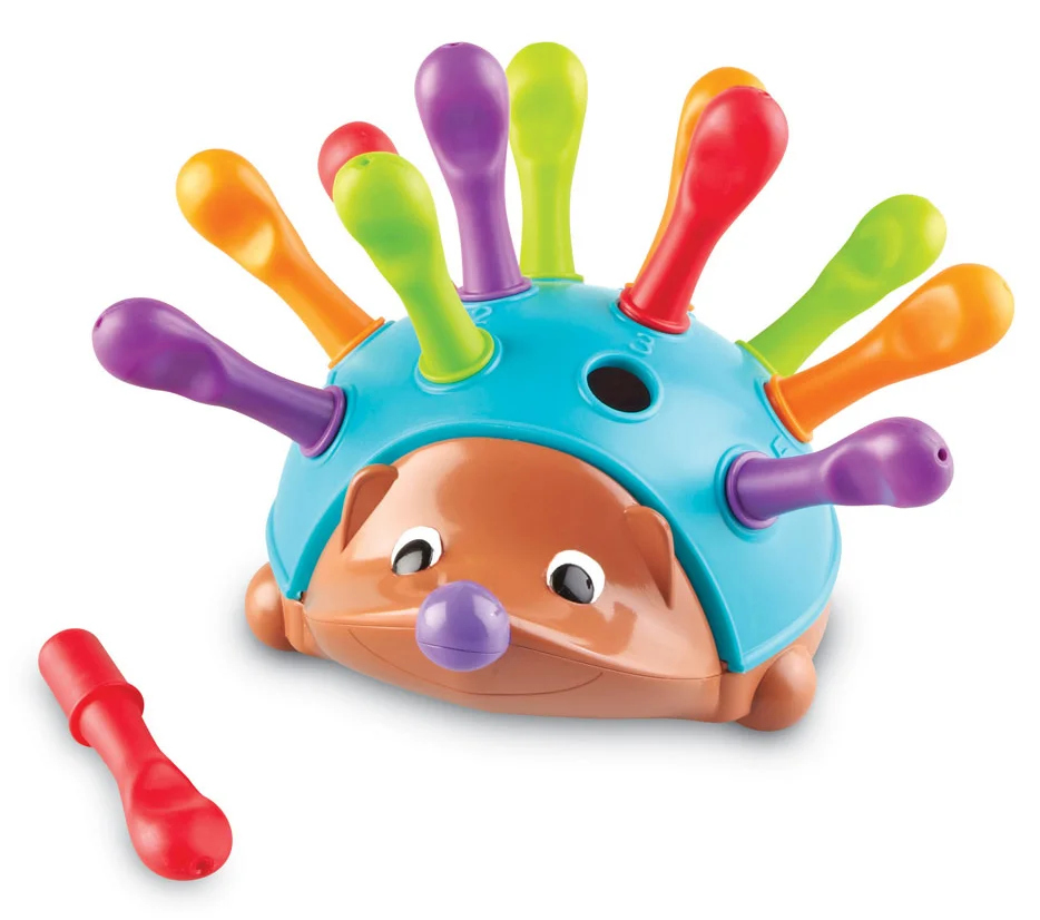 Spike The Fine Motor Hedgehog -  Learning Resources Der er masser af legemuligheder med pindsvinet. Barnet kan både benævne de forskellige farver, tælle piggene, mens de sættes på pindsvinet, sortere piggene efter farver, arbejde med mønstre og rækkefølge