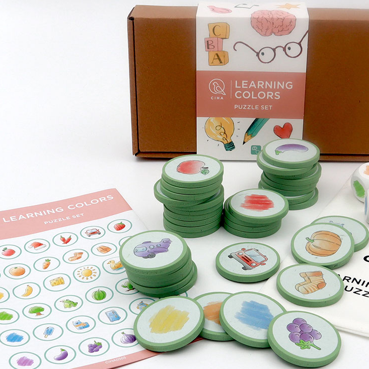 Fint spil af træ, hvor I skal slå med terningen og på forskellige måder øve farvernes navne.I spillereglerne beskrives der 6 forskellige alternativer, både for 1 og for flere spillere.Indhold: 36 træbrikker i 6 forskellige farver og 6 brikker i hver sin farve2 træterningerSpilleregler på dansk, tysk, engelsk, svensk, norsk og hollandsk.