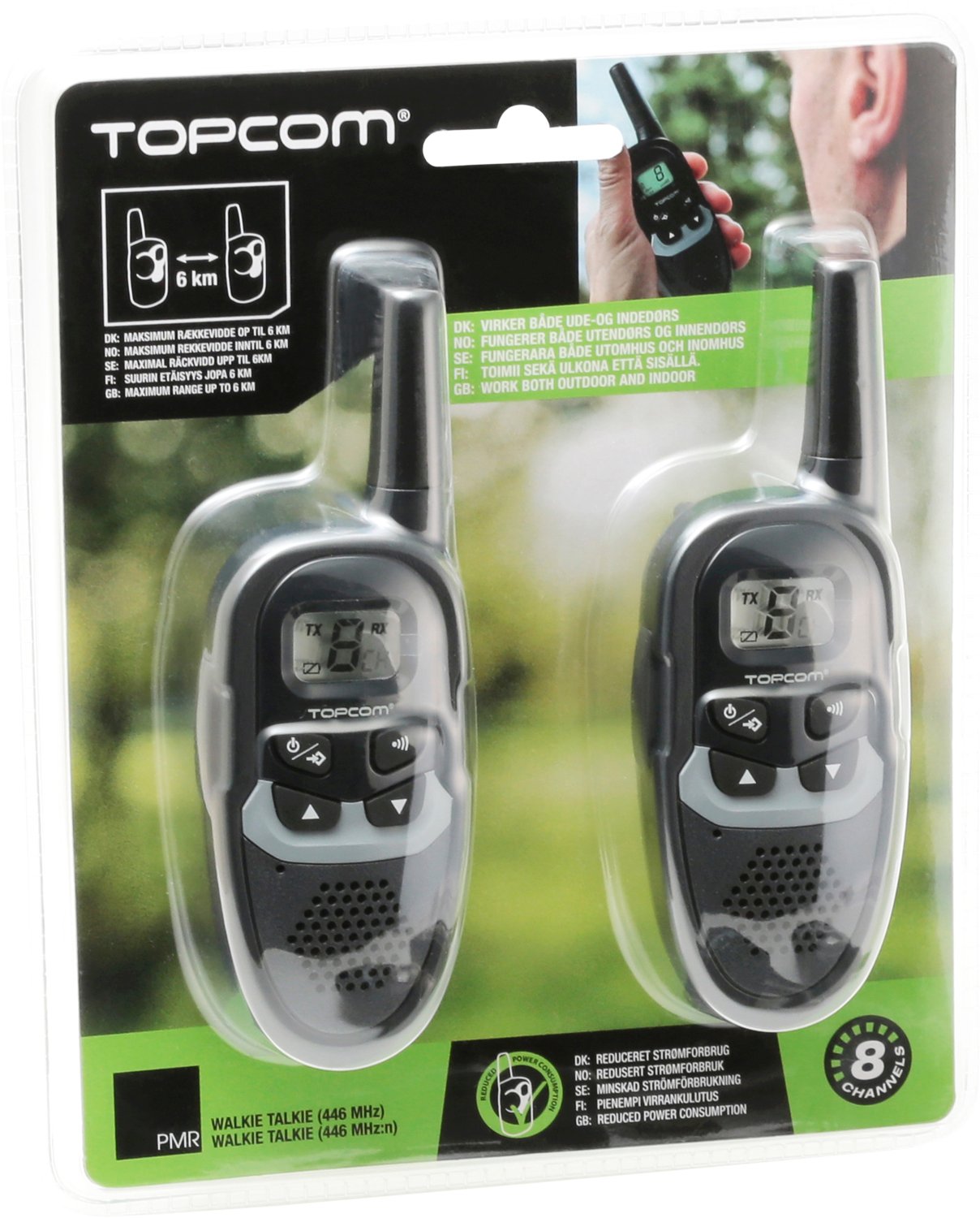 Topcom RC-6410 Walkie Talkies PMR har en rękkevidde på op til 6 km og kan bruges både inde og ude. Bruger 6 AA batterier
