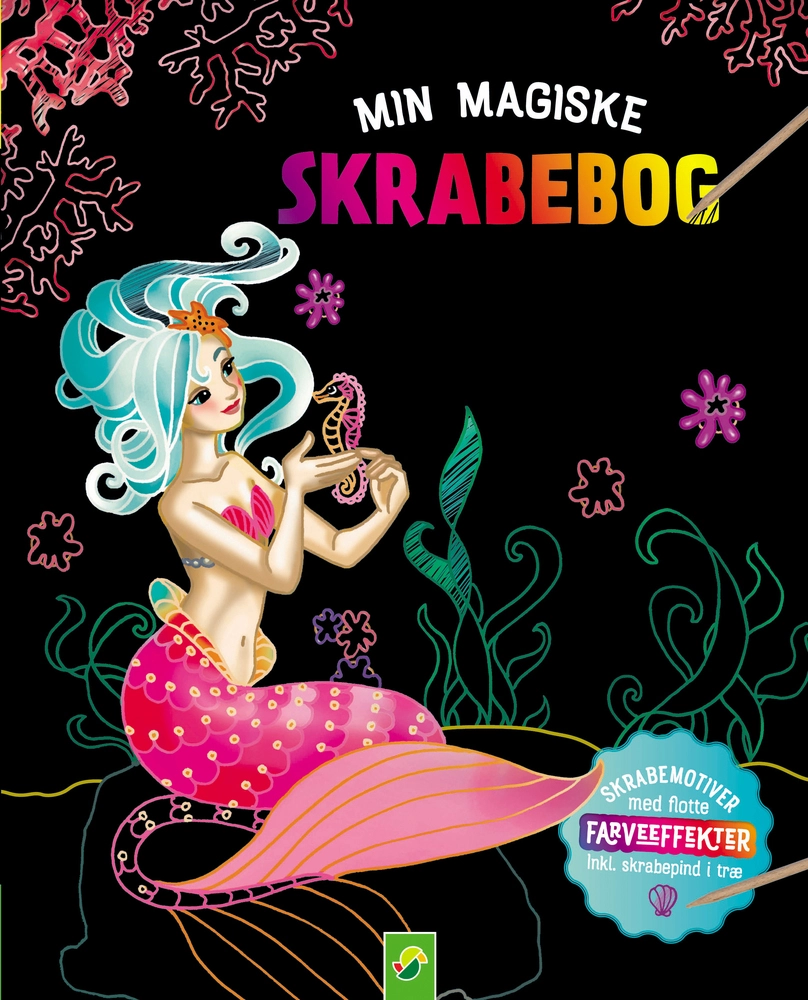 Min magiske skarbebog. Fyldt med prinsesser, feer, enhjørninger og meget mere. Skrab dine egne mønstre frem med den medfølgende skrabepind. Alle sider kan tages ud og foræres. Fra 5 år.