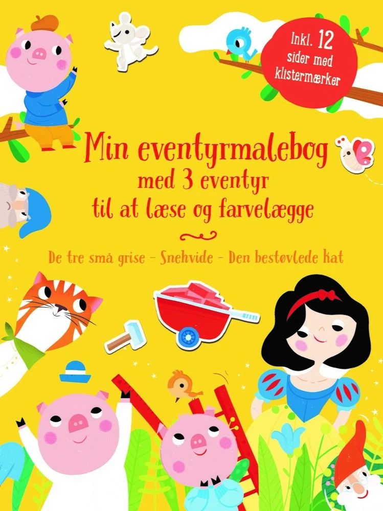 Mal og pynt de tre elskede eventyr med dine egne farver de medfølgende klistermærker. De tre små grise - Snehvide - Den bestøvlede kat