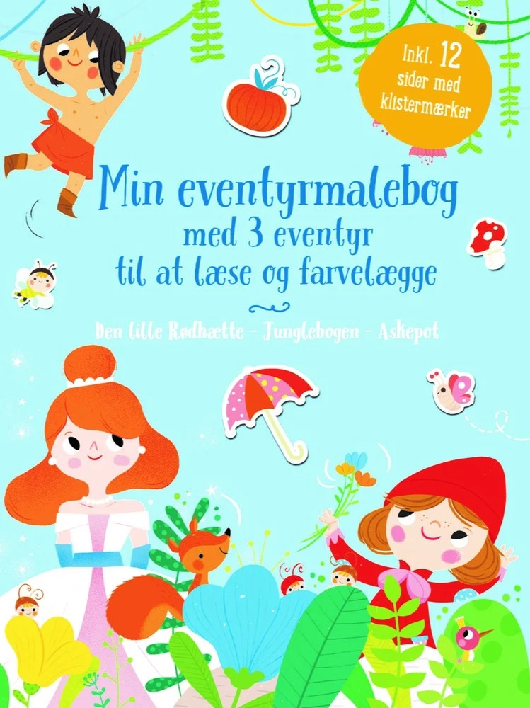 Mal og pynt de tre elskede eventyr med dine egne farver de medfølgende klistermærker. Den lille rødhætte - Junglebogen - Askepot