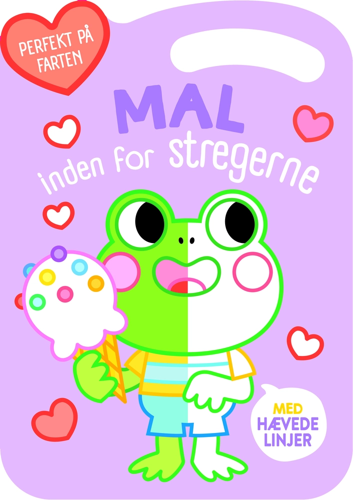 Indeholder 16 flotte sidder med fremhævede streger til at guide tegneren. Fra 2 år. Bagpå hver side er der en lille ekstra tegning med 3 linjer til at skrive en hilsen på.