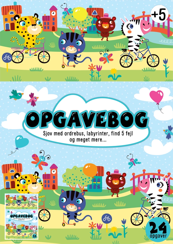 Opgavebogen, også kaldet aktivitetsbog, har mange forskellige opgaver, hvor det gøres sjovt at lege og lære på samme tid. Indeholder bl.a. Rebus og labyrint opgaver