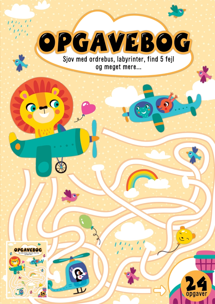 Opgavebogen, også kaldet aktivitetsbog, har mange forskellige opgaver, hvor det gøres sjovt at lege og lære på samme tid. Indeholder bl.a. Rebus og labyrint opgaver