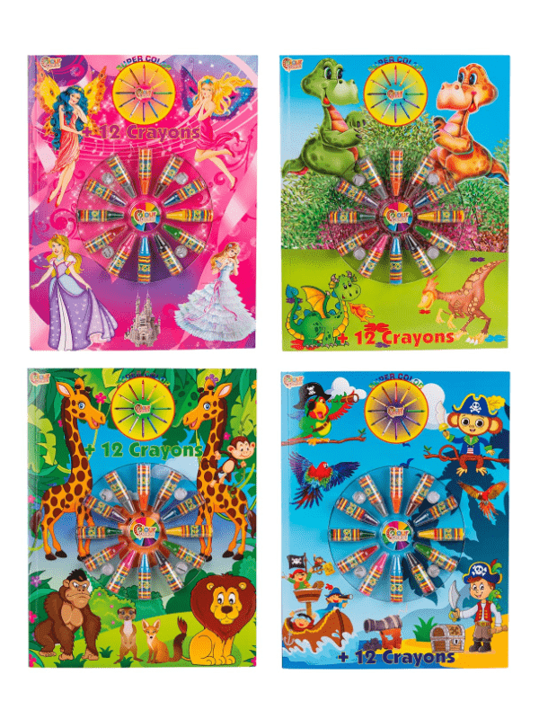 Malebog Med 12 Farvekridt Super fin malebog, med 24 sider der er klar til ar blive farvelagt med de medfølgende farvekridt i 12 forskellige farver.