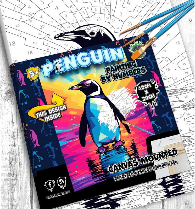 Mal Efter Tal På Lærred - 30x40 Cm - Pingvin - Splat