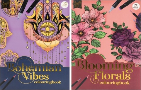 Hver bog indeholder 20 ark af høj kvalitet, som er trykt på 250 g papir. Dette sikrer, at farverne træder klart frem, uanset om du bruger farveblyanter, tuscher eller vandfarver. Det kraftige papir forhindrer også, at farverne bløder igennem, så du kan male uden bekymringer.