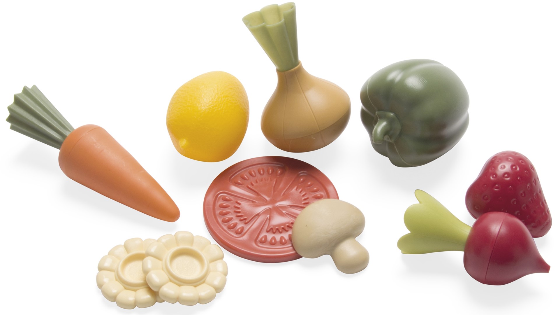 Denne farverige 10-pak med frugt og grønt fra Green Garden-serien giver børn mulighed for at udforske en verden af sunde fødevarer gennem leg. Sættet indeholder et varieret udvalg af naturtro frugt og grøntsager, der er perfekte til rollelege i køkkenet,