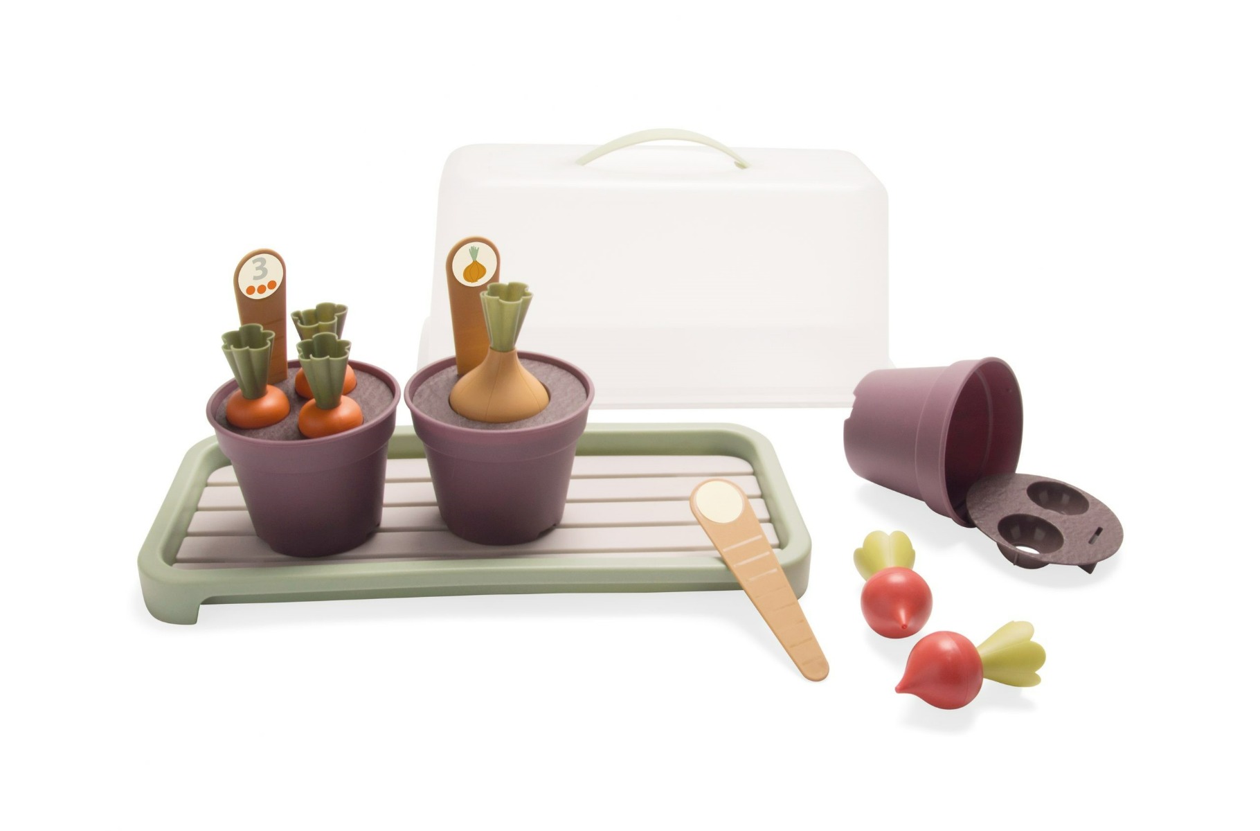 Den danske virksomhed dantoy ønsker med 2022-serien Green Garden at lade børn helt ned til 2 år deltage i planlægningen af årets høst i haven og drivhuset. Når børn har hænderne med, lærer de hurtigere og med større entusiasme, end de gør, når de sidder stille. Så vil du gerne have, at dit barn eller børnene i institutionen skal lære om såning af grøntsager og blomster, så er dette sæt helt perfekt. Her er 18 dele af plastik, der alle kan maskinvaskes ved 70 grader og dermed er smittesikre.Med i sættet er: Drivhus med glaslågGulerødder, løg og radisserPlantepindePotter med jordKlistermærkaterSættet er Svanemærket, fremstillet på dantoys fabrik i Hobro, og plastiklegetøjet kan sorteres som hård plast og genanvendes.