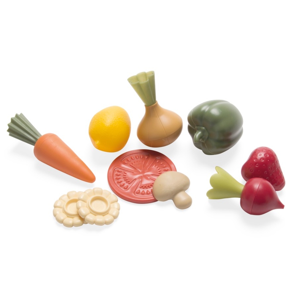 Let legemad, der kan holde til årevis af leg både inde og ude. Indhold: Radise, løg, peberfrugt, jordbær, tomatskive,