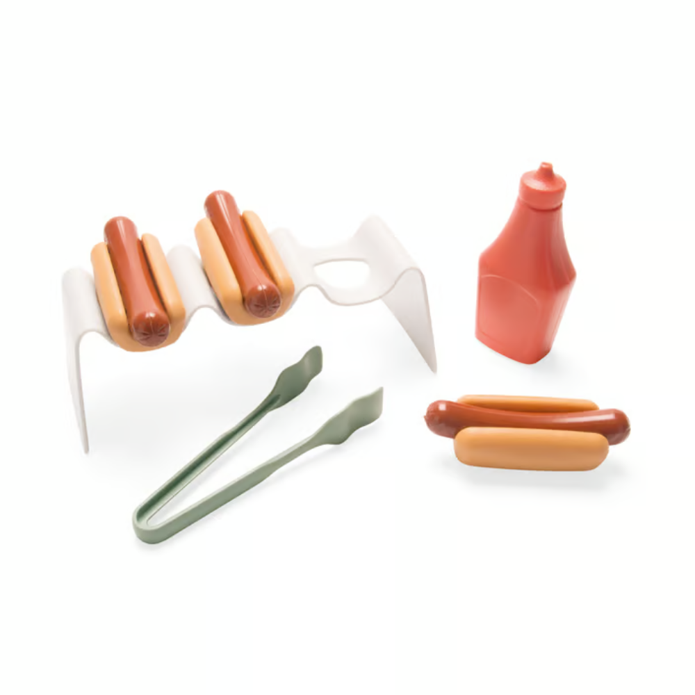 Så kan hotdogboden godt åbne, så venner og bamser kan komme og købe og bede om ekstra ketchup eller et særtilbud, hvis man køber alle hotdogs på én gang. Hvad mon de så skal koste?Snak om hotdoggens vej gennem kroppen eller leg butik og find på gode tilbud og øv at tage mod bestilling - der er mange læringsmuligheder i sådan et legesæt.