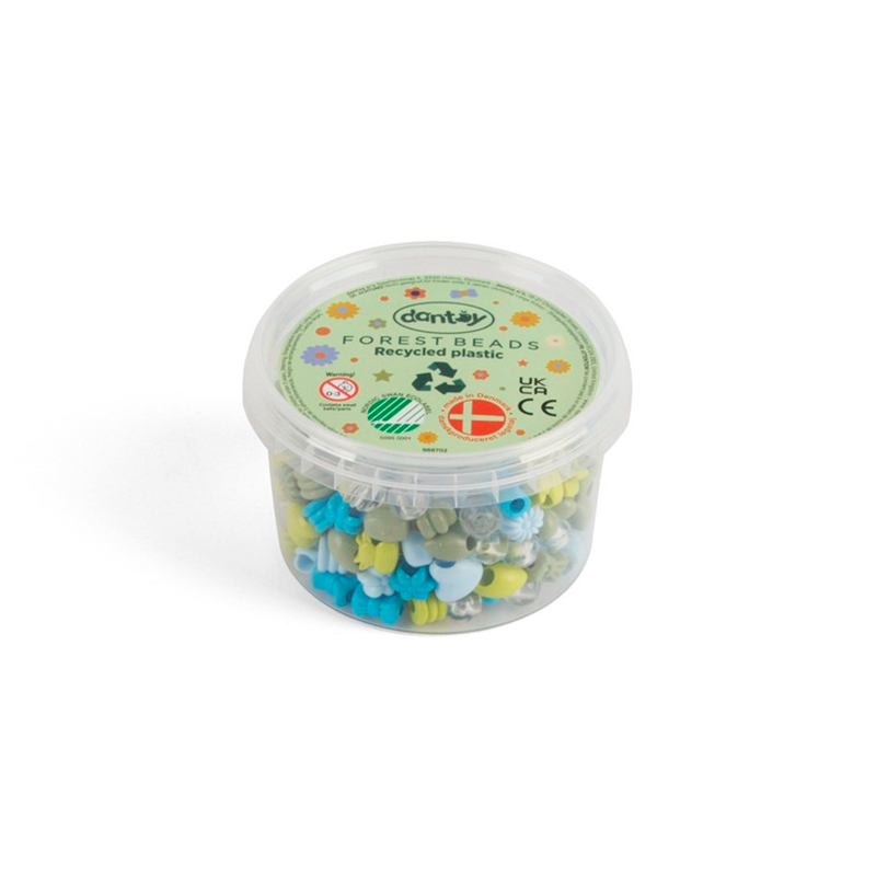 Lille bøtte med svanemærkede perler. Det er ikke helt ligetil at leve op til kravene for at blive svanemærket. Men danske Dantoy er lykkedes med det og har også plastperler af genanvendt svanemærket plast i sortimentet.Her er 280 perler som er nok til et par armbånd og en halskæde. Sådan lige nok til at teste, om det med at have perler til smykker vækker interessen for smykkedesign hos dit barn.