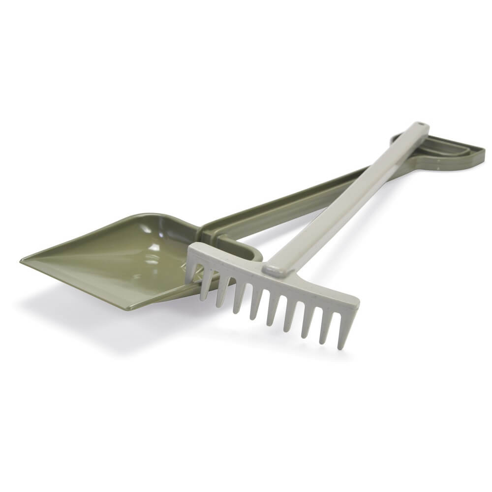Stort sæt med skovl og rive i en størrelse, så der rigtig kan graves huller og rives fine mønstre i sandkassen. Af den velkendte kvalitet fra Dantoys, men med et twist. Green Bean serien fra det danske firma Dantoy er fremstillet af genanvendt, svanemærket plastik fra deres egne legetøjsproduktion. Det er omsmeltede rester, så farverne varierer.Hele produktionen er nøje overvåget og godkendt.Dantoys plastlegetøj er ikke skabt til at være bionedbrydeligt i naturen, da det vil betyde begrænset holdbarhed, hvilket ikke er bæredygtigt. Til legetøj, hvor der er forbrugt ressourcer til at formgive og indpakke varen, er det mere meningsfuldt at legetøjet har en lang levetid. Bionedbrydelig giver bedre mening til fx fødevareemballage, hvor der ikke er en ret lang produktionsproces eller ret meget emballage.Dette legetøj er derfor ikke skabt til at blive smidt ud, men brugt i mange år og derefter afleveret som hård plast til genbrug, så ressourcerne ikke bliver spildt.