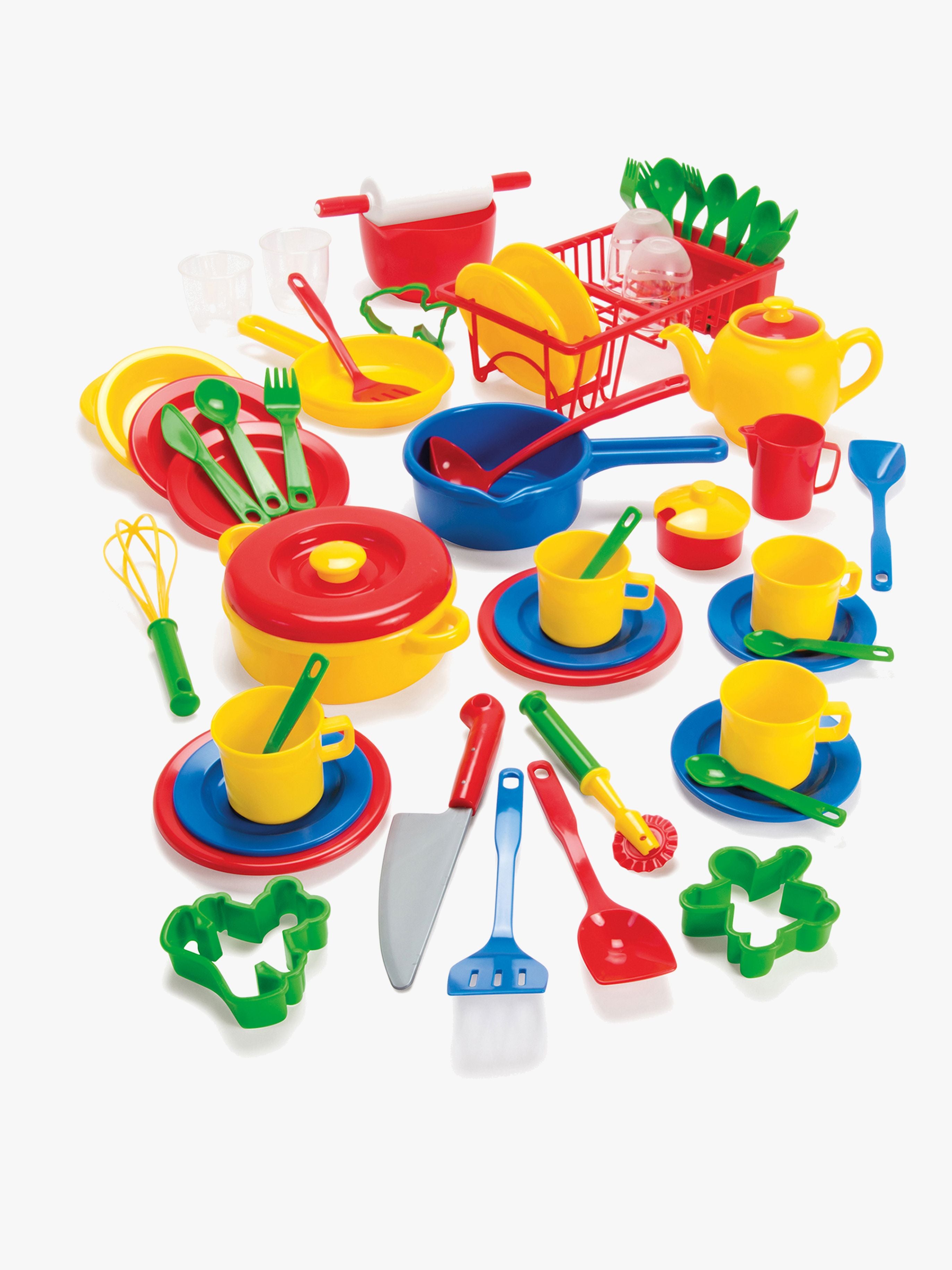 Giv dit barn mulighed for at udforske sin kreativitet med dette Dantoy Køkkensæt. Sættet inkluderer alt, hvad der behøves for at skabe en sjov og lærerig leg i køkkenet. Med tallerkener, bestik, kopper, kander og gryder i holdbart plast, kan børnene lege, som om de er i et rigtigt køkken.