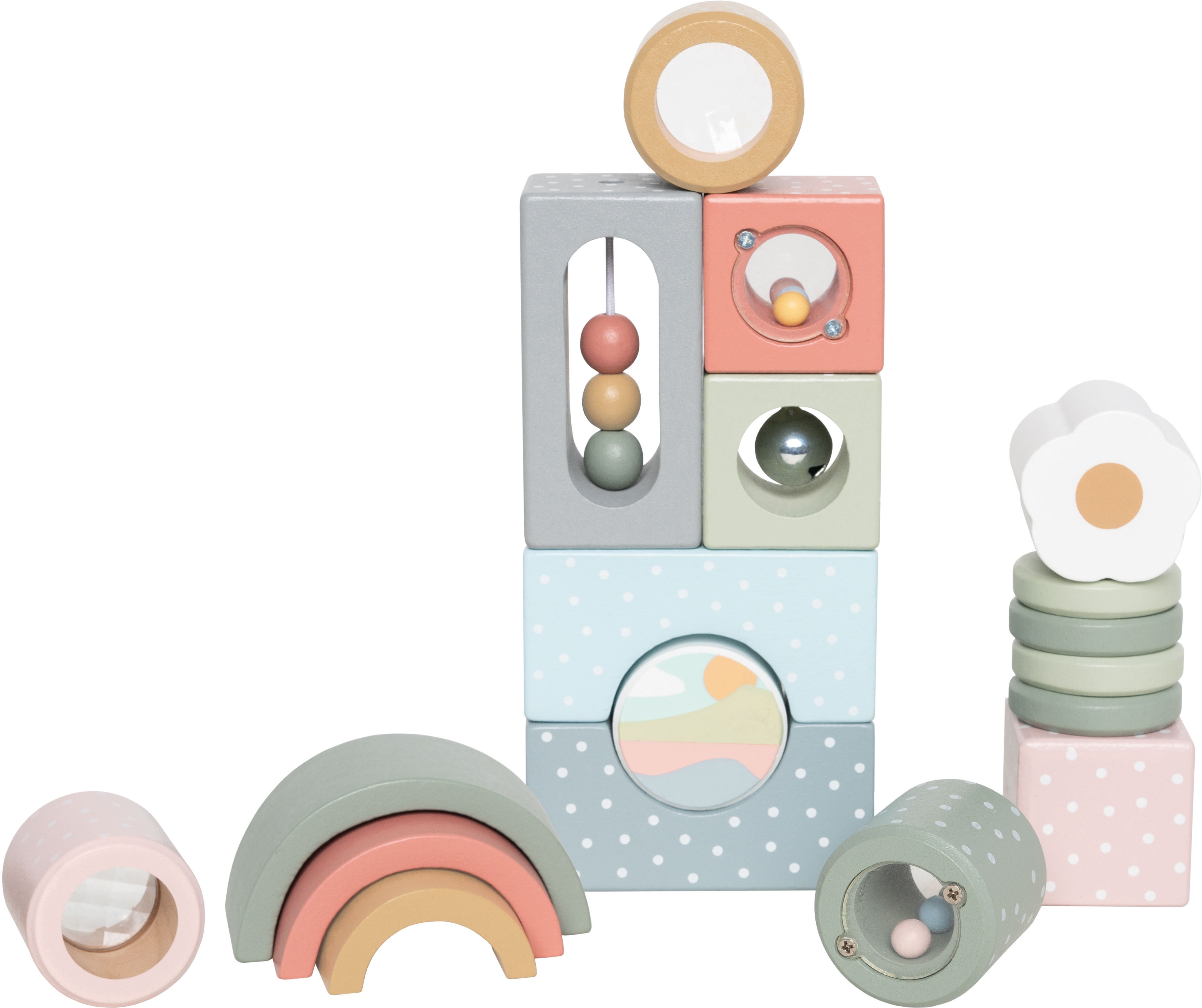 Sound Blocks aktivitetsklodser fra Jabadabado med uendelige muligheder at udforske. De har flere former med forskellige overflader og forskellige, raslende lyde. Perfekte til stimulering af din babys sanser. - Perfekt til sensoriske lege med både struktur og lyd! - Perfekt til træning af dit barns hånd-øje-koordination og finmotorik. - CE-mærket. - Anbefalet alder: Fra 1,5 år. - Træ.