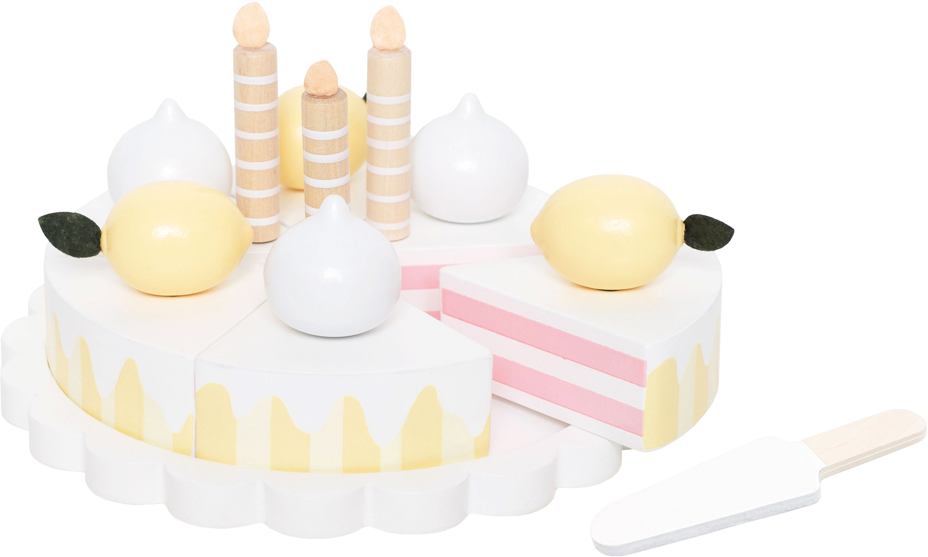 Lagkage fra Jabadabado med seks søde brikker. Den har en masse sjovt tilbehør og en kagespade, så man kan servere stykkerne. Perfekt til timevis af fantasifuld leg. - Indeholder: 6 kagestykker, 3 citroner, 3 marengs, 3 stearinlys, 1 kagefad, 1 kagespade. - Til sjov og fantasifuld rolleleg. - CE-mærket. - Anbefalet alder: Fra 2 år. - Træ.
