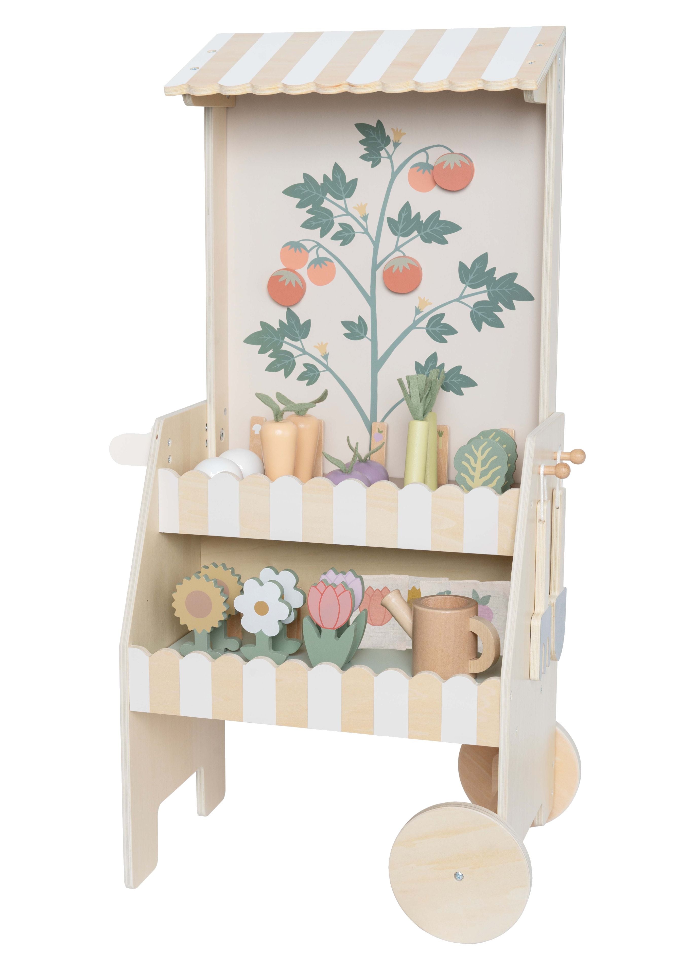 Plantevogn fra Jabadabado med et detaljeret design i flotte farver. Den har en masse spændende tilbehør og letrullende hjul for let transport. Perfekt til mange timers sjov. - Indeholder: 1 plantevogn, 8 plantepinde, 4 frøposer, 1 vandkande, 2 svampe, 2 gulerødder, 2 radiser, 2 tulipaner, 2 solsikker, 1 rive, 1 spade, 2 kål, 2 porrer. - Plant i din egen vogn! - Let at flytte. - Kan bruges både udenfor og indenfor. - Perfekt til træning af dit barns hånd-øje-koordination og finmotorik. - Let at rengøre med en fugtig klud. - CE-mærket. - Anbefalet alder: Fra 3 år. - Træ.