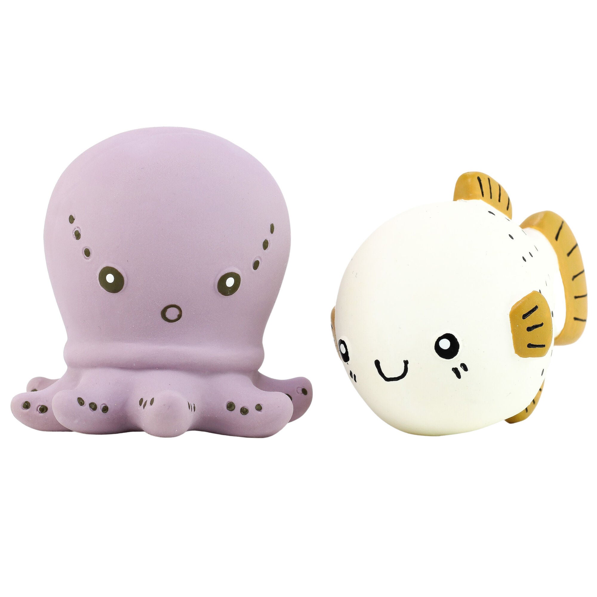 En pakke med to stk badelegetøj fra Rätt Start. Dette sjove sæt består af en blæksprutte og en fisk, uden hul så vandet ikke samles indeni. Perfekt til vandleg i badekarret eller leg i børneværelset. Anbefalet alder: Fra 6 måneder.