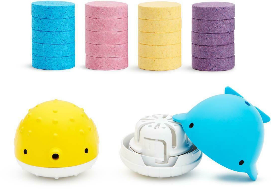 Badelegetøj fra Munchkin med fine, stærke farver. De har fugtgivende refills med e-vitamin og sheabutter. Bruges under opsyn af en voksen Anbefalet alder: Fra 2 år